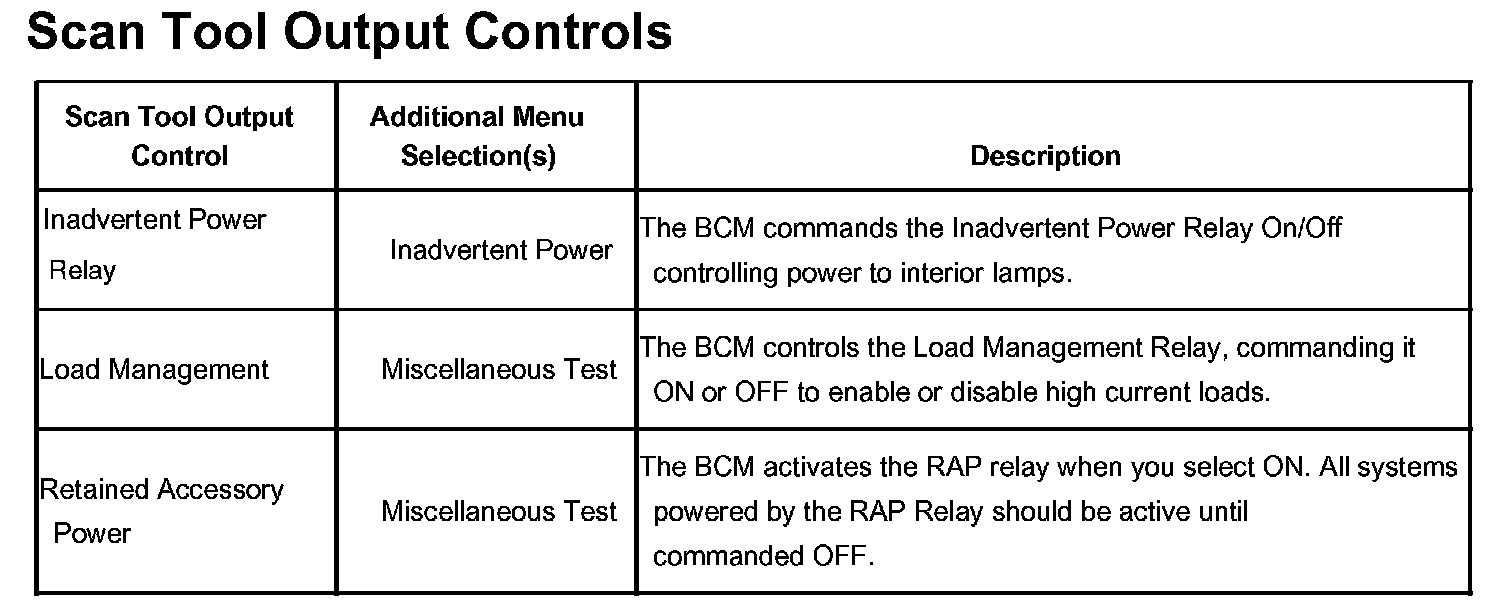 Scan Tool Output Controls: