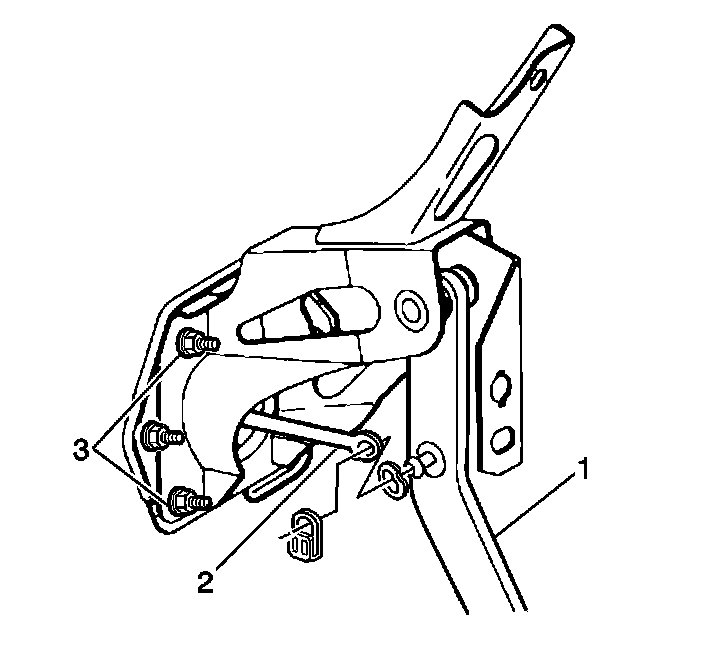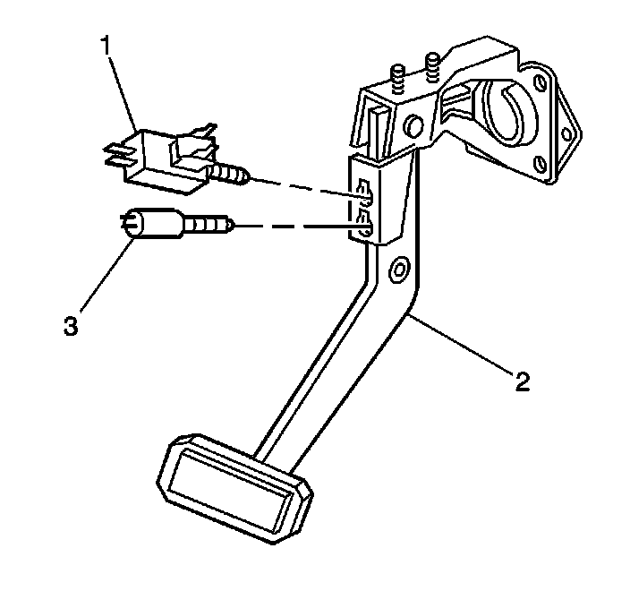 1. Install the cruise control release switch (3), if equipped, and the stop lamp switch (1) to the brake pedal with the bracket (2).