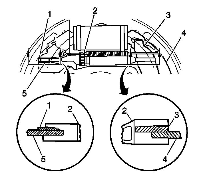 7. Important: Ensure that the adjuster (2) engages the brake shoe (4) and the park brake actuator (3) properly.