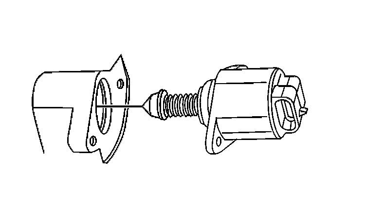 NOTE: The IAC valve may be damaged if installed with the cone (pintle) extended more than 28 mm (1-1/8 in). Measure the distance that the valve is extended before installing a new valve. The distance from the idle air control valve motor housing to the end of the idle air control valve pintle should be less than 28 mm (1-1/8 in). Manually compress the pintle until the extension is less than 28 mm (1-1/8 in).