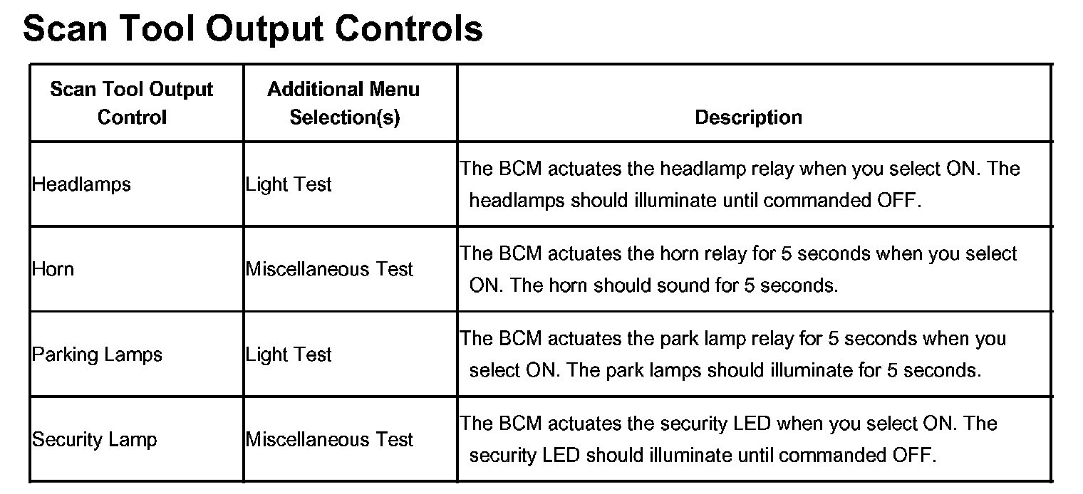 Scan Tool Output Controls: