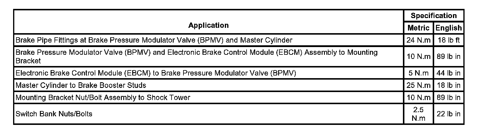 Fastener Tightening Specifications: