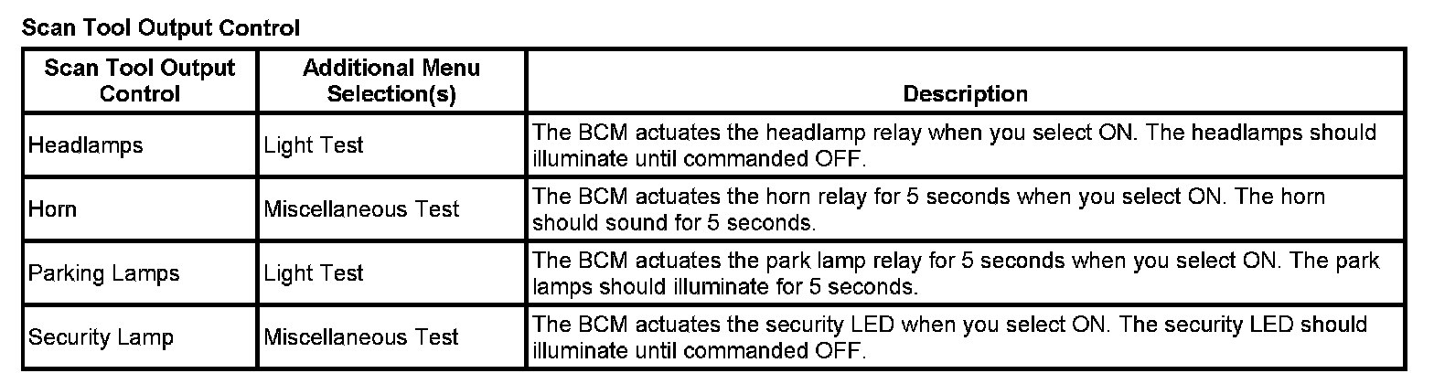 Scan Tool Output Controls: