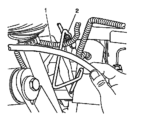 7. Install the right hand park brake cable (1) into the left guide loop (2).