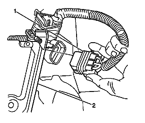 5. For all wheel drive, disconnect the electrical connector (1) from the rear differential clutch pump check valve (2).
