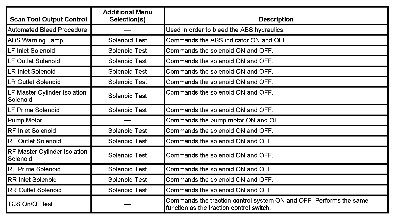Scan Tool Output Controls