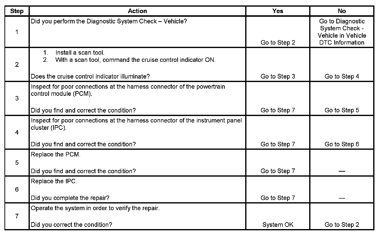 Cruise Control - Indicator Inoperative