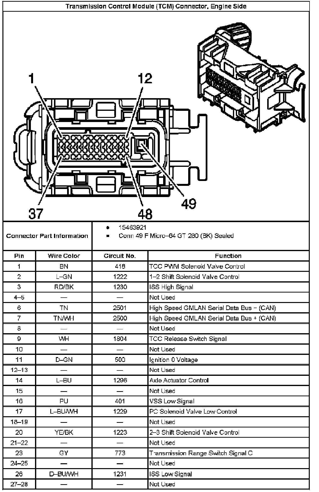 Transmission Control Module (TCM) Connector, Engine Side 2: