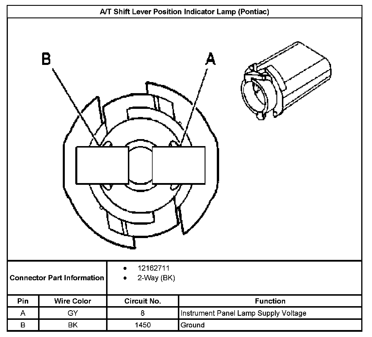 A/T Shift Lever Position Indicator Lamp: