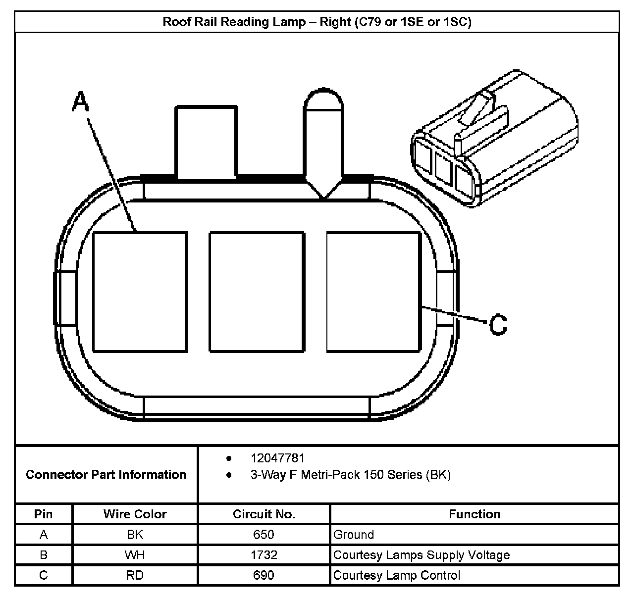 Roof Rail Reading Lamp - Right (C79 Or 1SE Or 1SC):