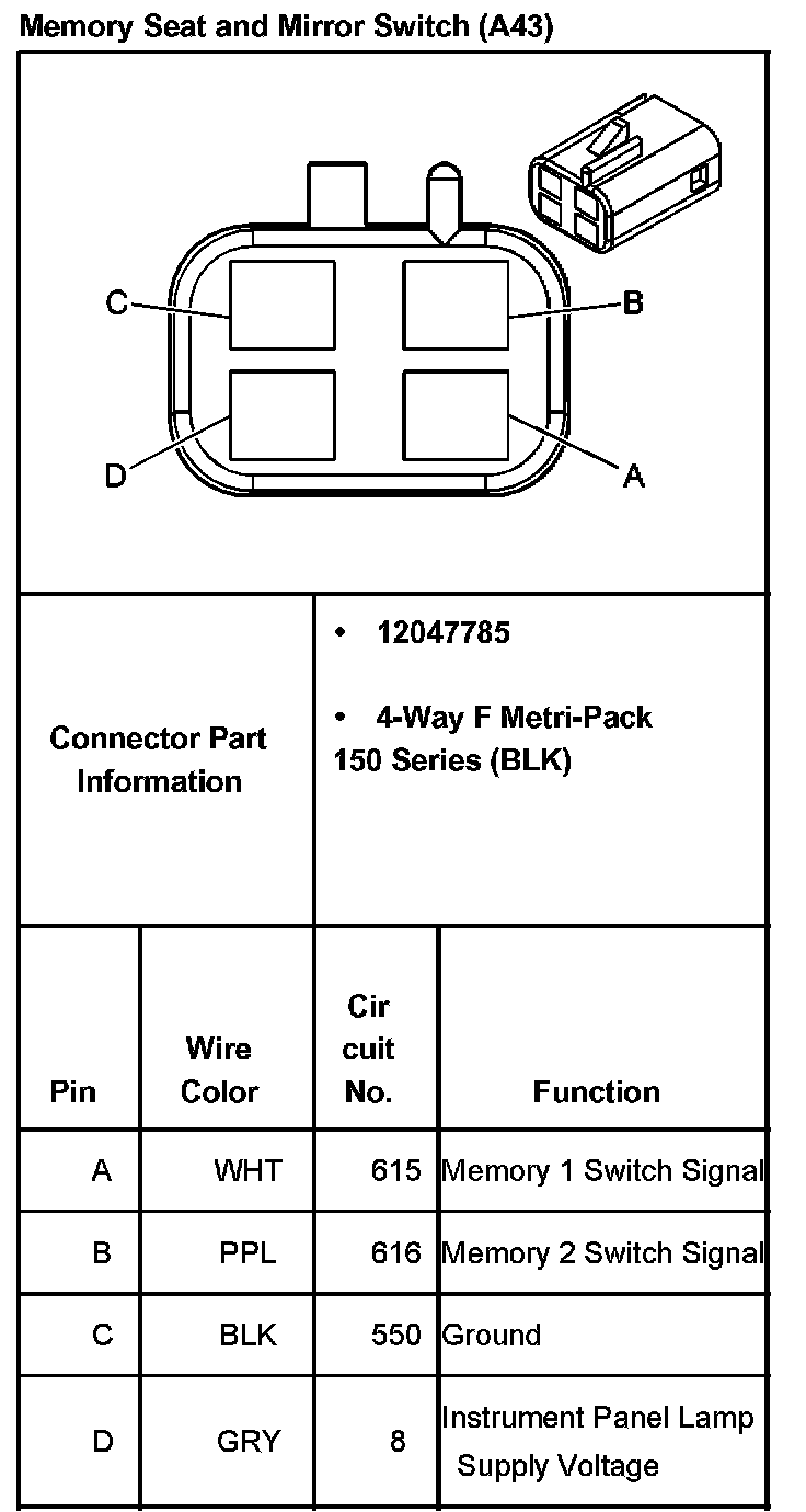 Memory Seat And Mirror Switch (With RPO Code A43):