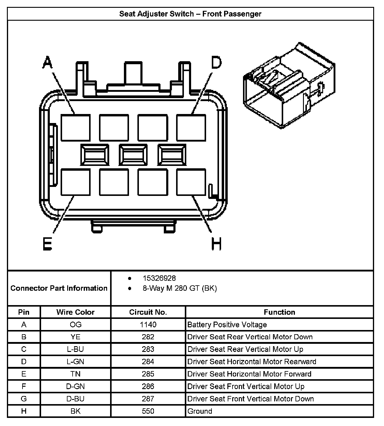 Seat Adjuster Switch - Driver (With RPO Code A43):