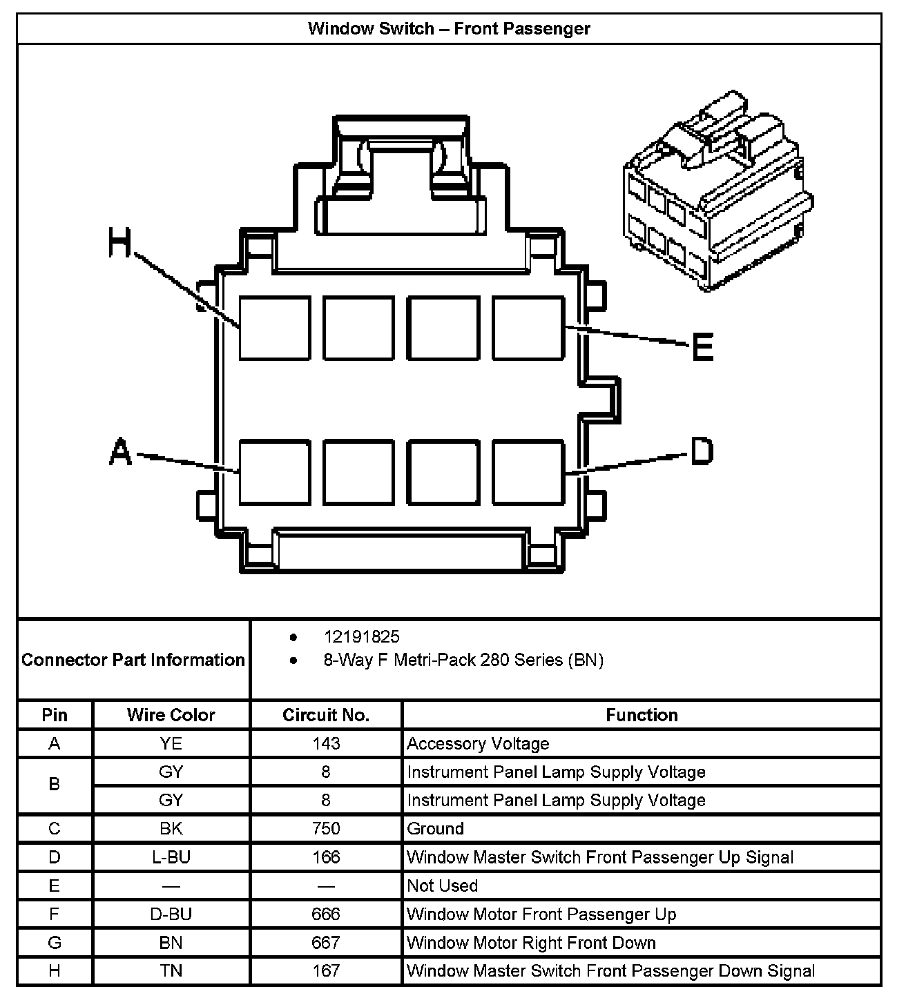 Window Switch - Front Passenger: