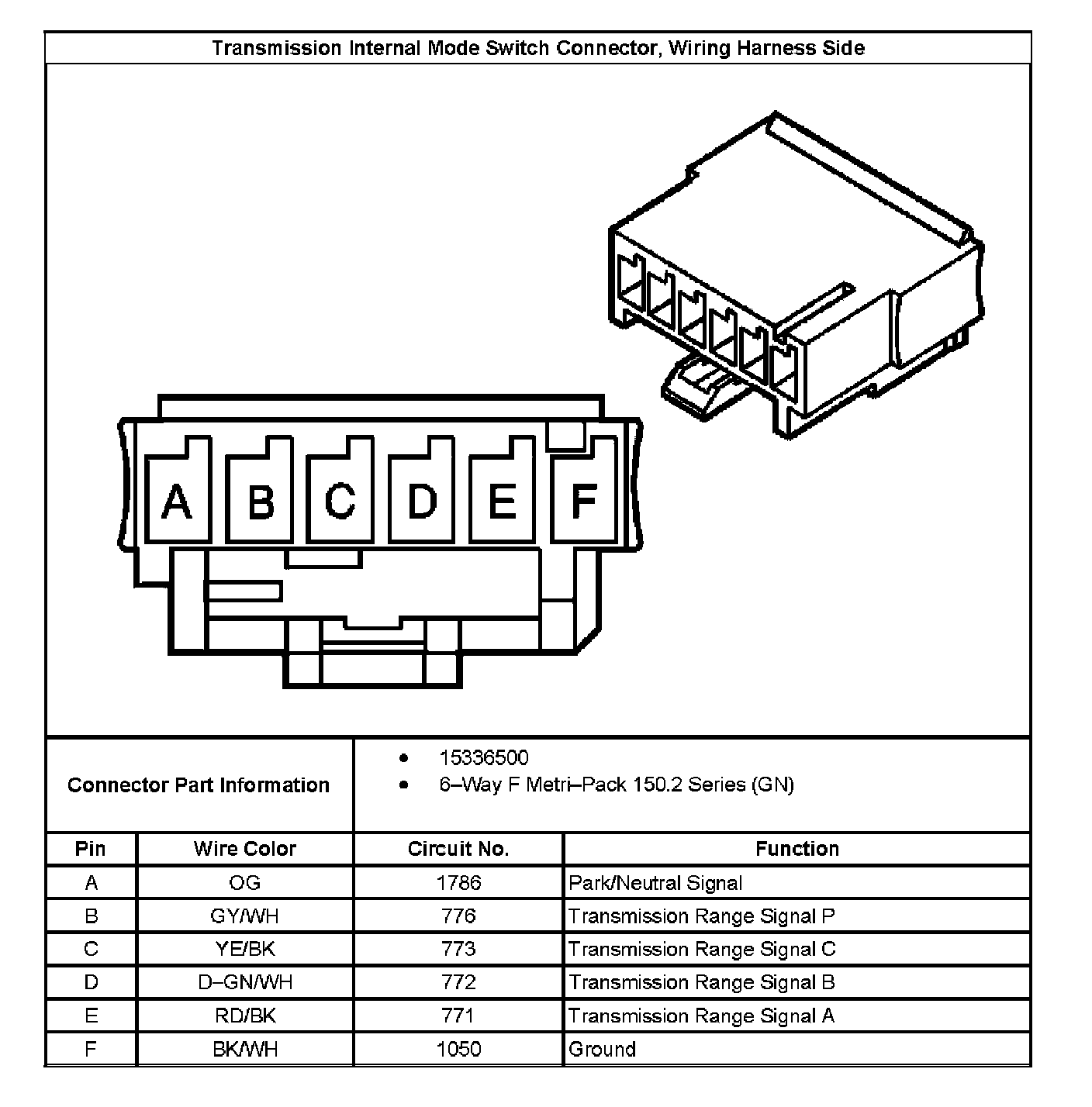 Transmission Internal Mode Switch Connector, Wiring Harness Side: