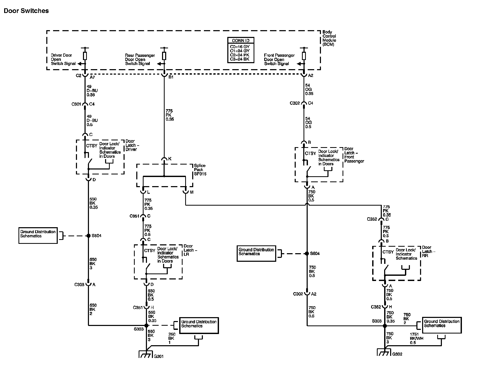 Location: The locations for the Connectors, Grounds, Splices, and Grommets shown within these diagrams can be found via their numbers at vehicle locations. Locations