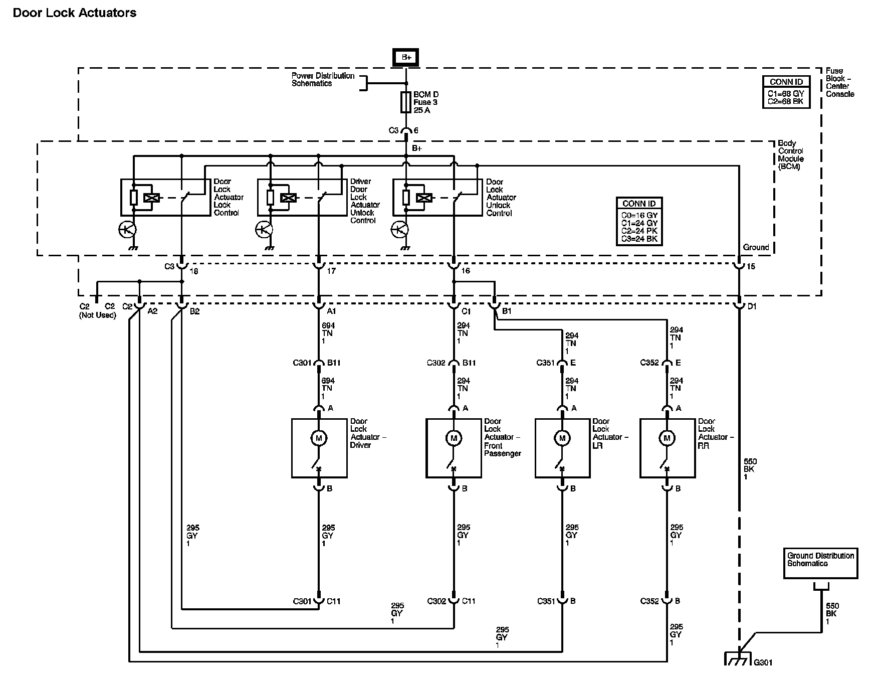 Locations: The locations for the Connectors, Grounds, Splices, and Grommets shown within these diagrams can be found via their numbers at Vehicle Locations. Locations