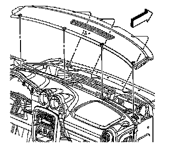 IMPORTANT: Remove the I/P upper trim panel slowly, the retainer clips could possibly fall into the I/P.