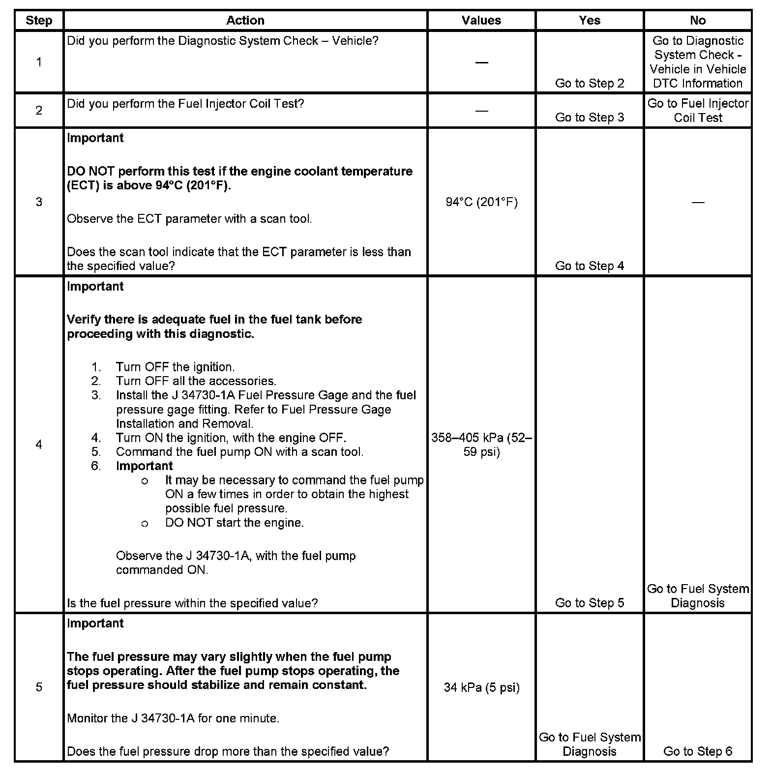3. The engine coolant temperature must be below the operating temperature in order to avoid irregular fuel pressure readings due to hot soak fuel boiling.