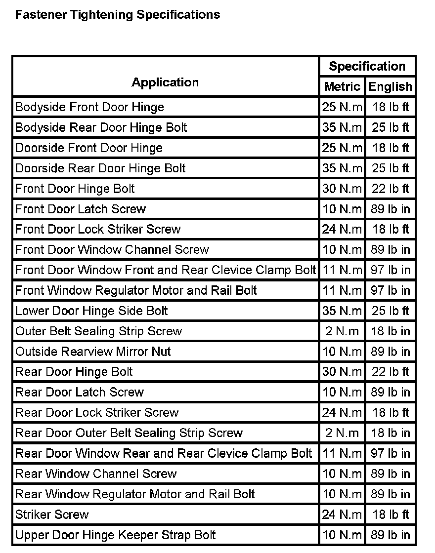 Fastener Tightening Specifications