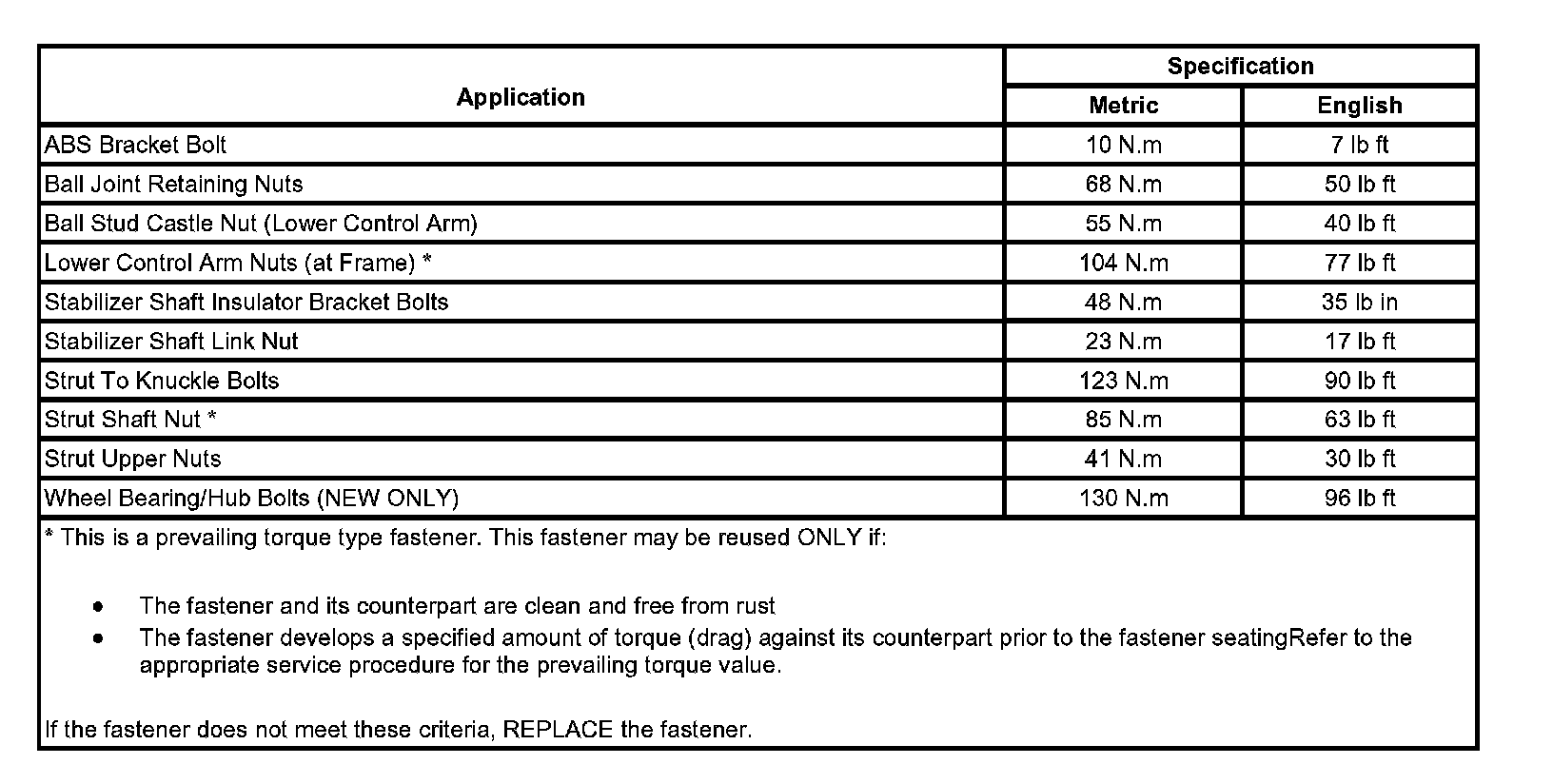 Fastener Tightening Specifications: