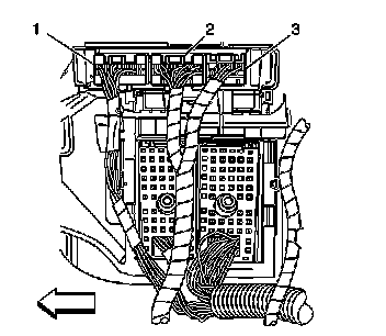 3. Disconnect the electrical connectors (1,2,3) from the body control module (BCM).
