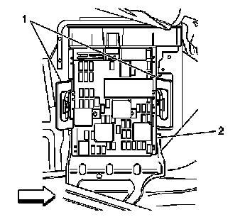 4. Disconnect the electrical connectors (1,2) from the console accessory wiring junction block.