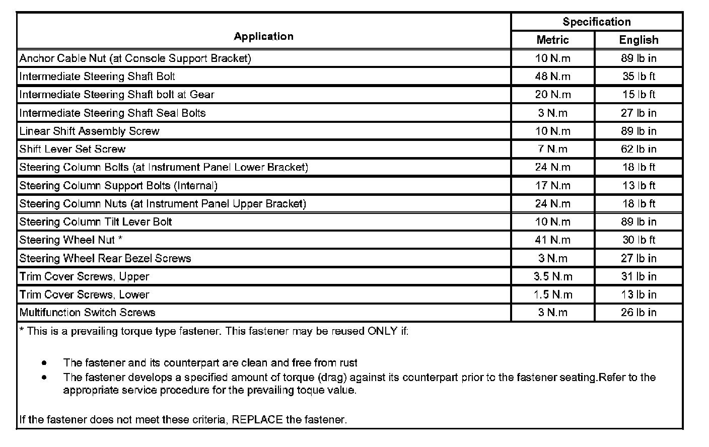 Steering Column: Specifications