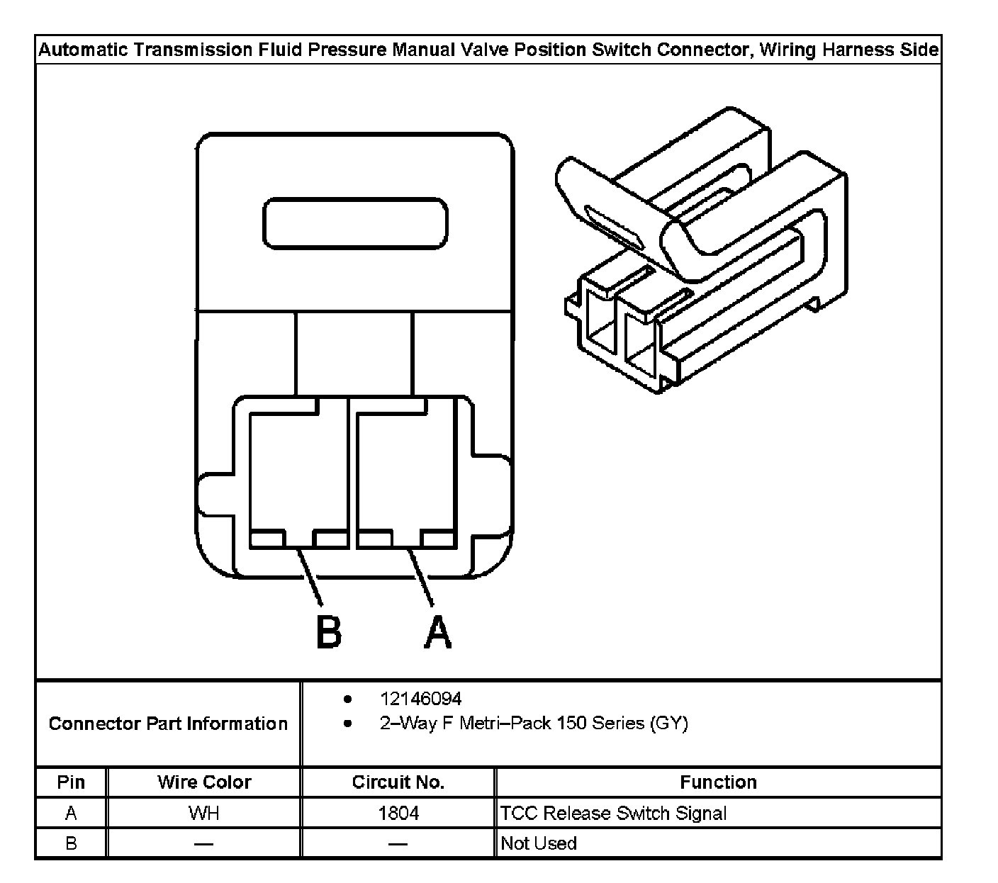 Automatic Transmission Fluid Pressure Manual Valve Position Switch Connector, Wiring Harness Side: