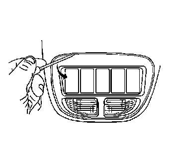 1. Insert a small, flat-bladed tool between the interior lamp/multifunction switch/reading lamp housing and the overhead console.