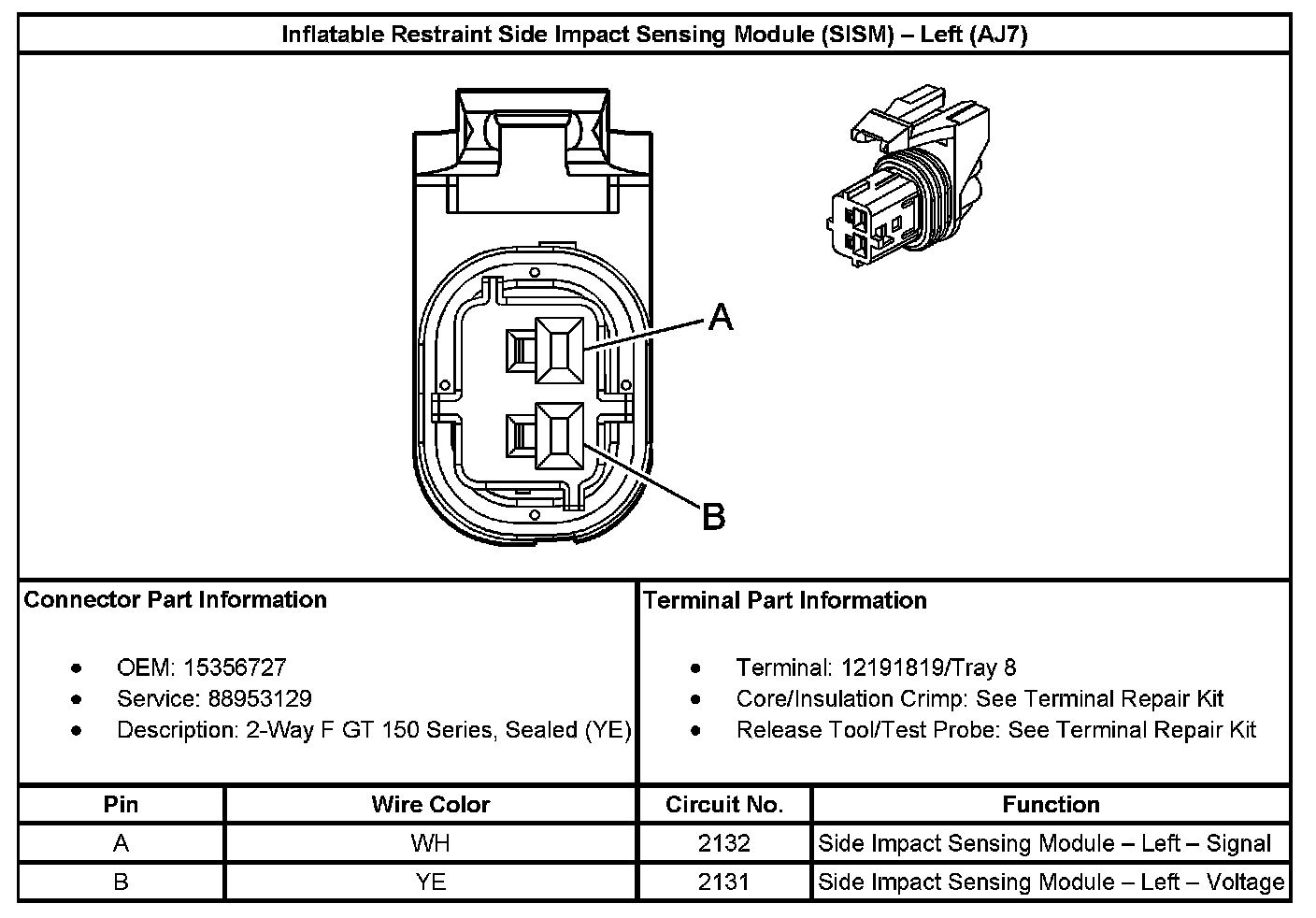 Inflatable Restraint Side Impact Sensing Module (SISM) - Left (With RPO Code AJ7):