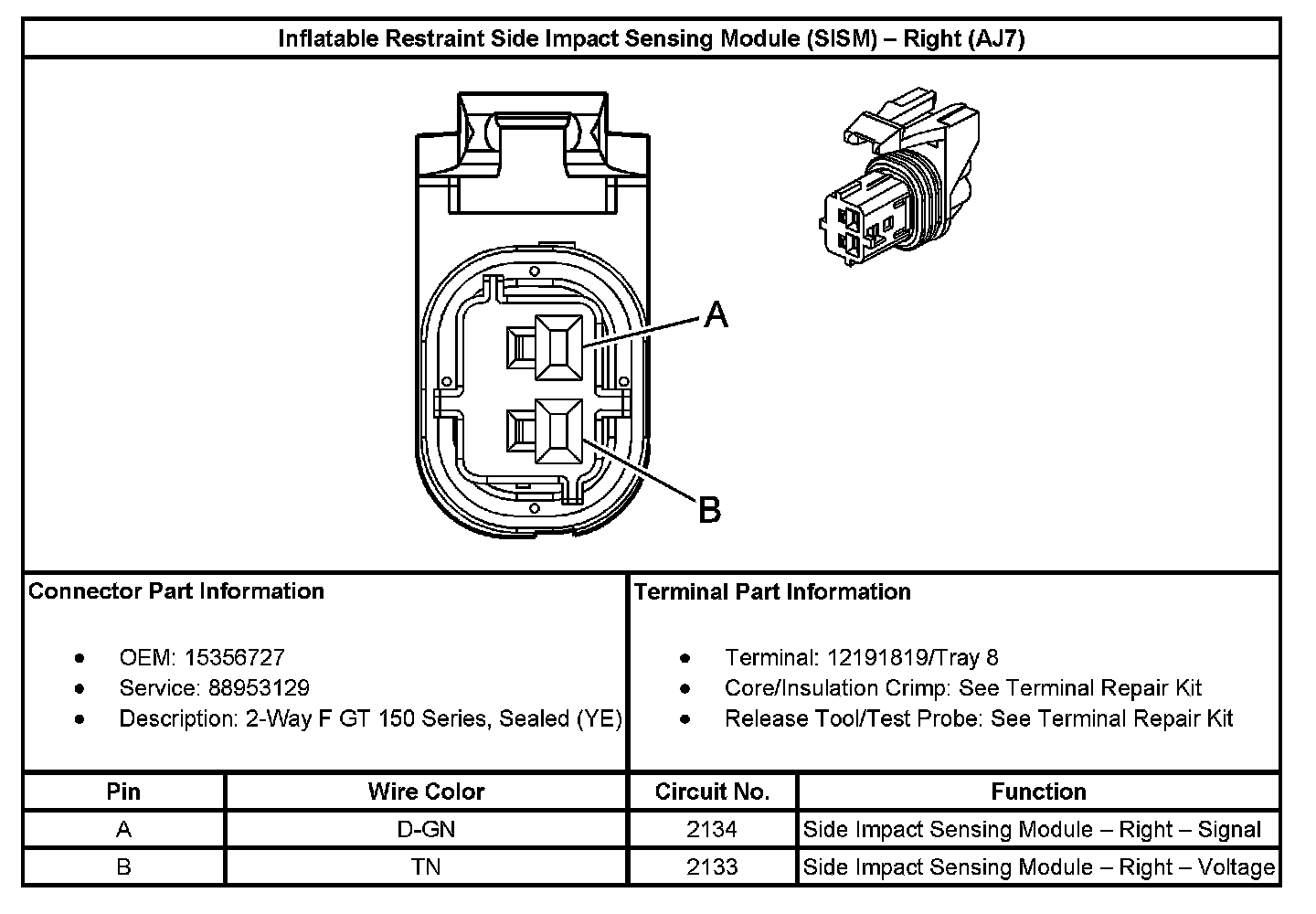 Inflatable Restraint Side Impact Sensing Module (SISM) - Right (With RPO Code AJ7):