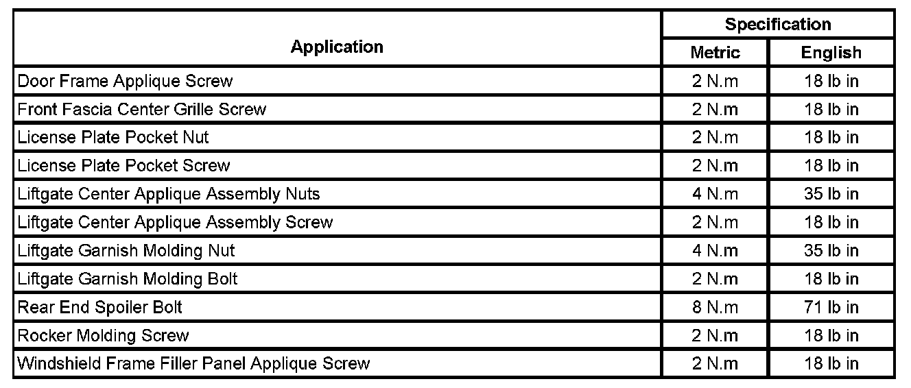 Exterior Moulding / Trim: Specifications