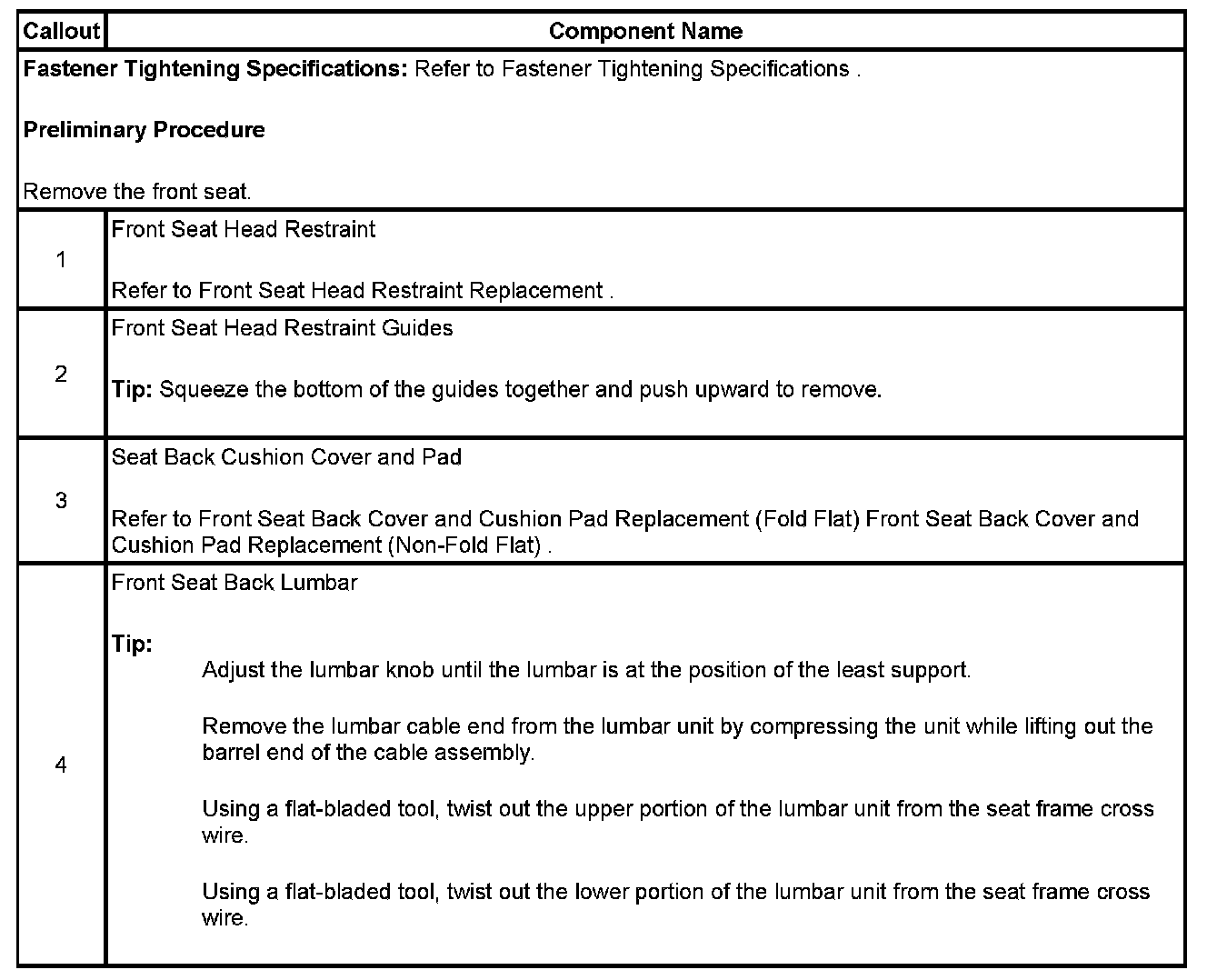 Lumbar Replacement - Front Seat