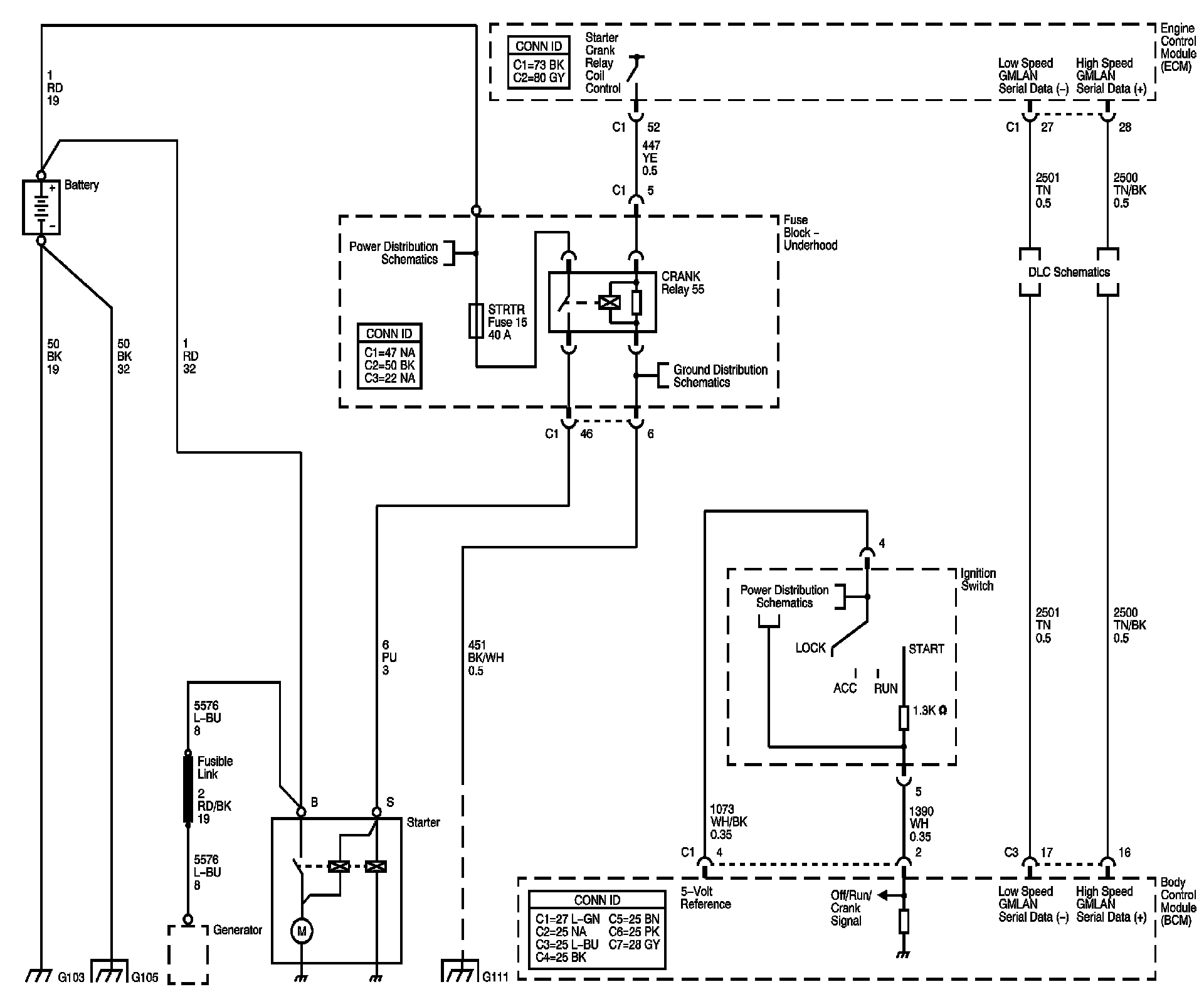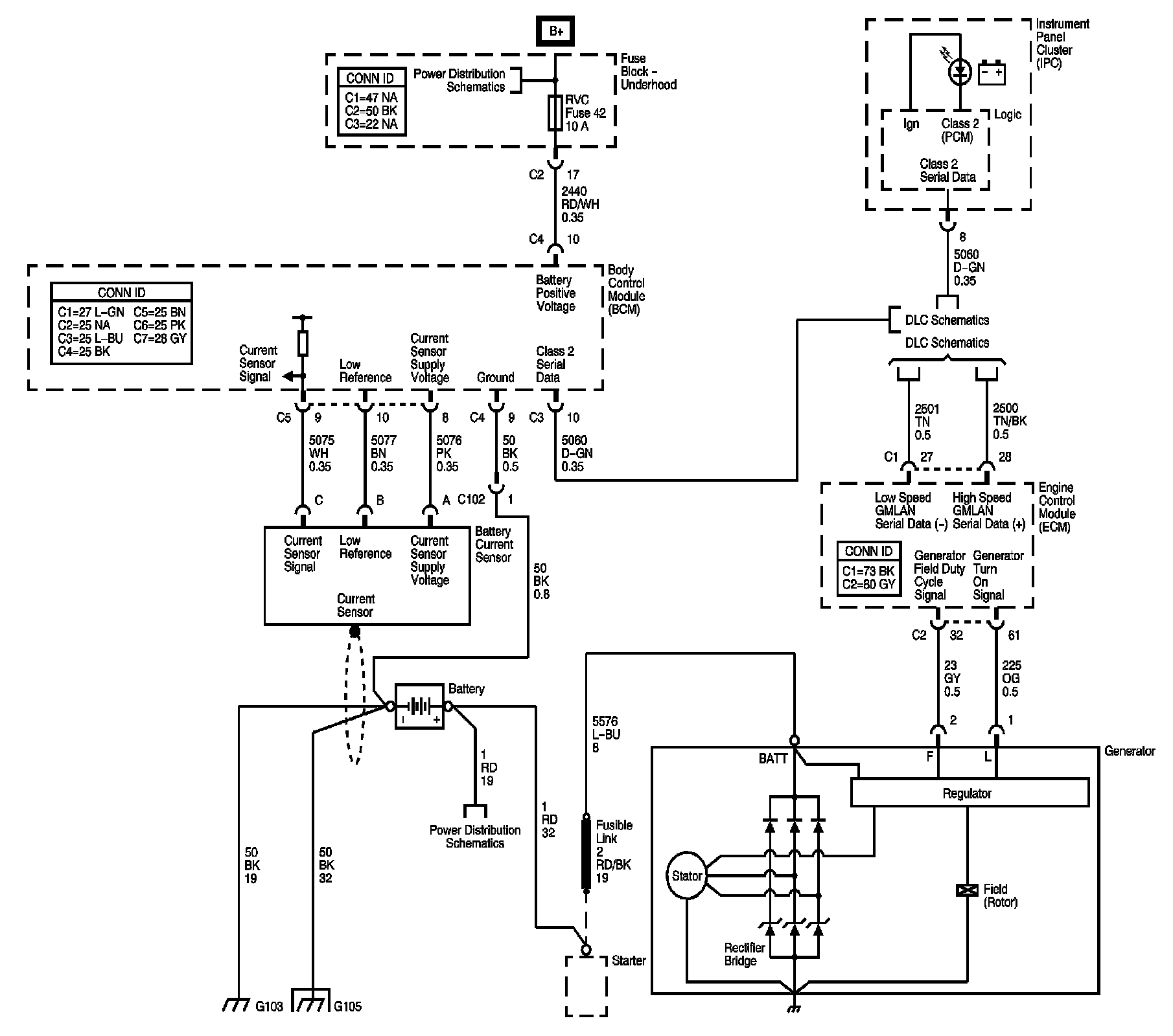 The locations for the Connectors, Grounds, Splices, and Grommets shown within these diagrams can be found via their numbers at Vehicle Locations.