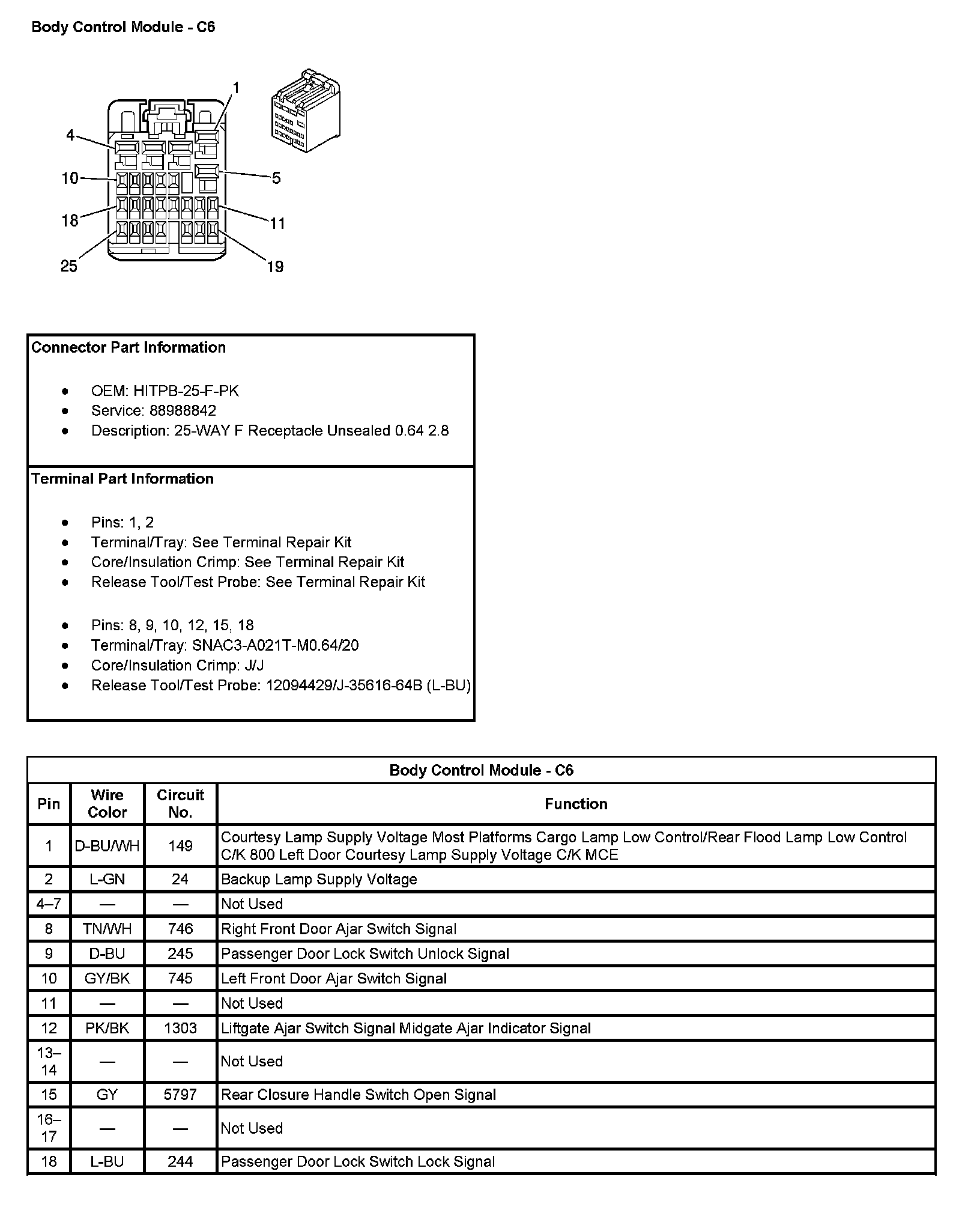 Body Control Module - C6 (Pin 19 To 25):
