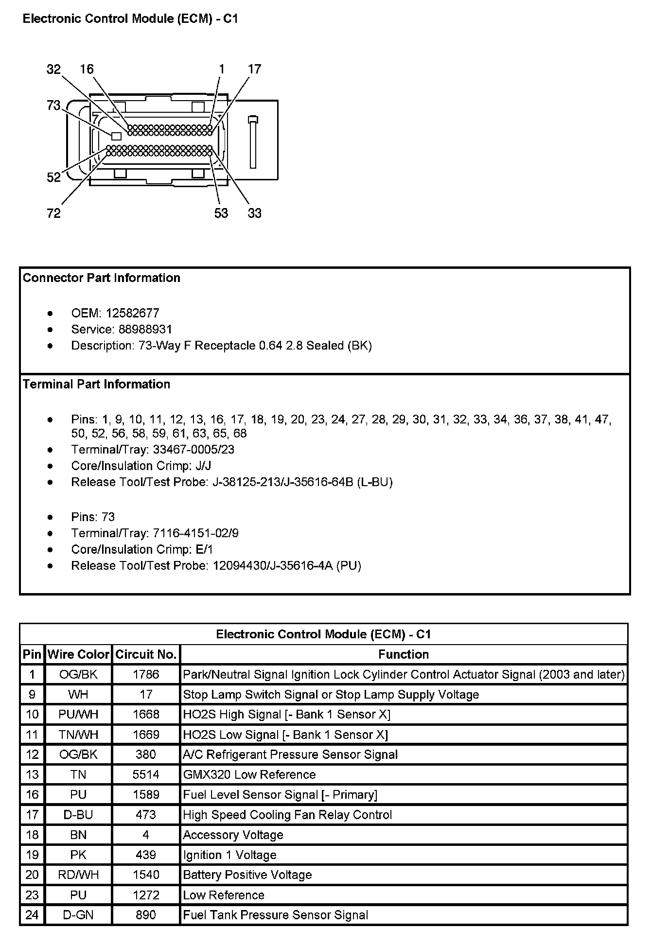 Electronic Control Module (ECM) - C1 (Pin 1 To 24):