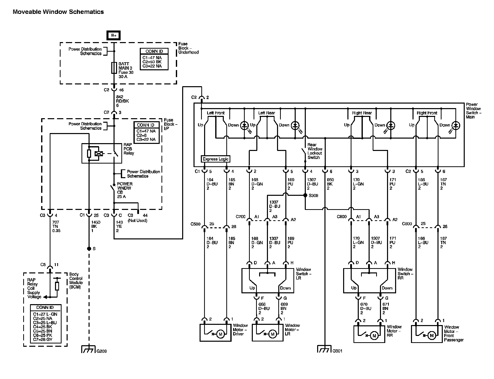 The locations for the Connectors, Grounds, Splices, and Grommets shown within these diagrams can be found via their numbers at Vehicle Locations.