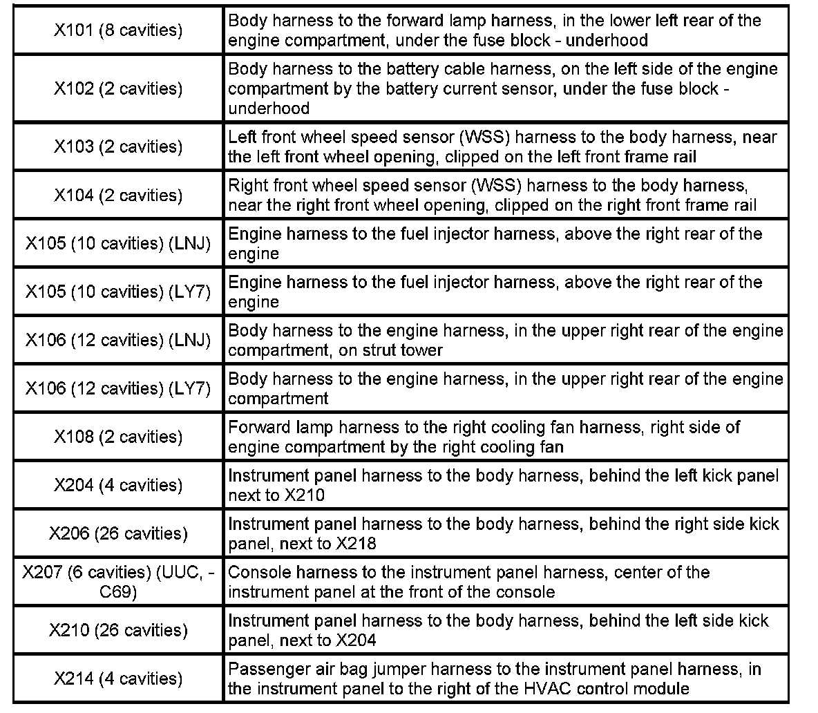 X101 - X214: