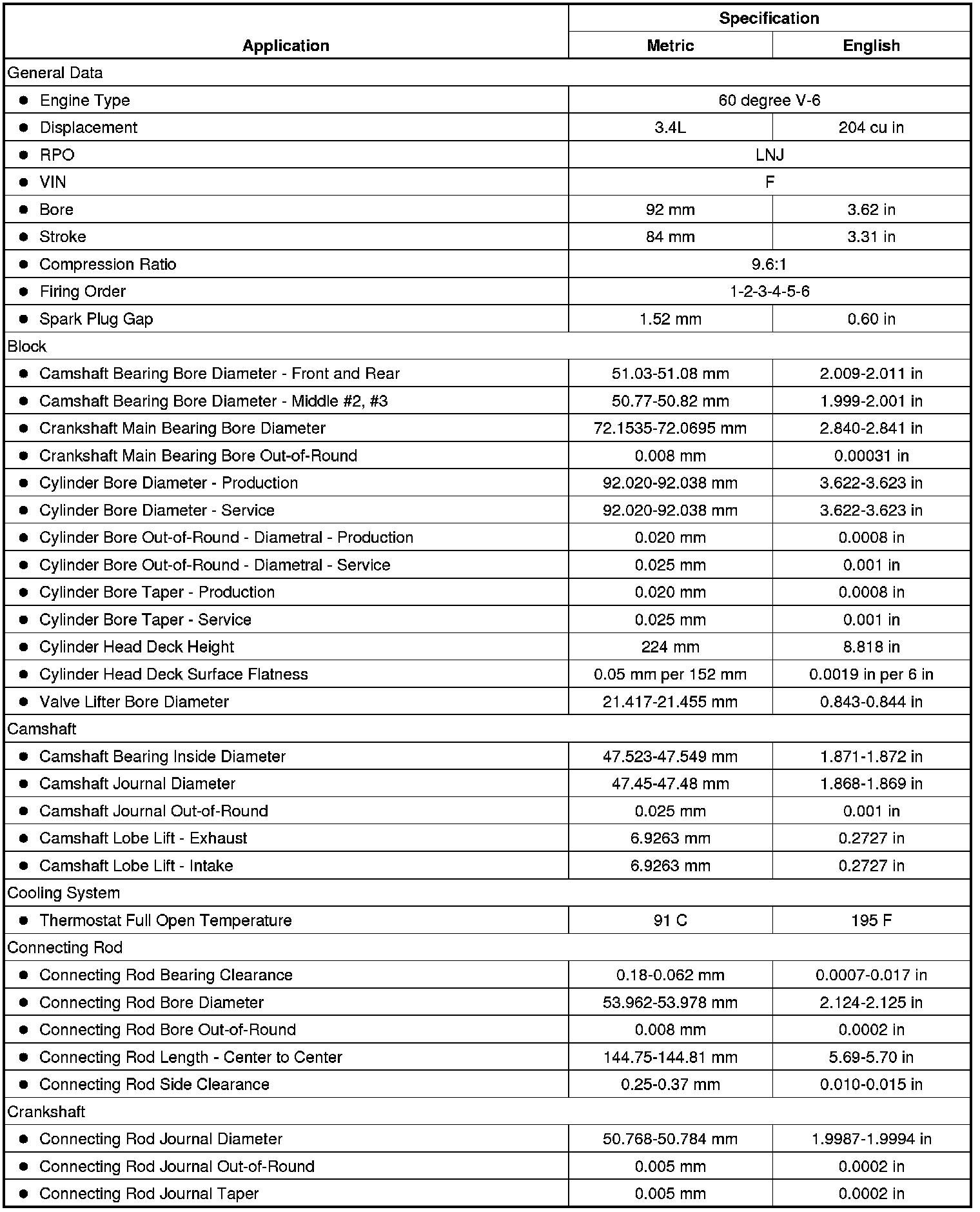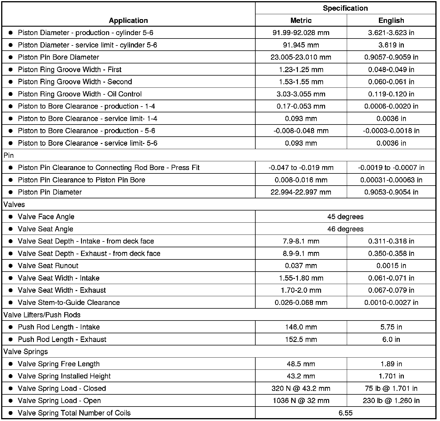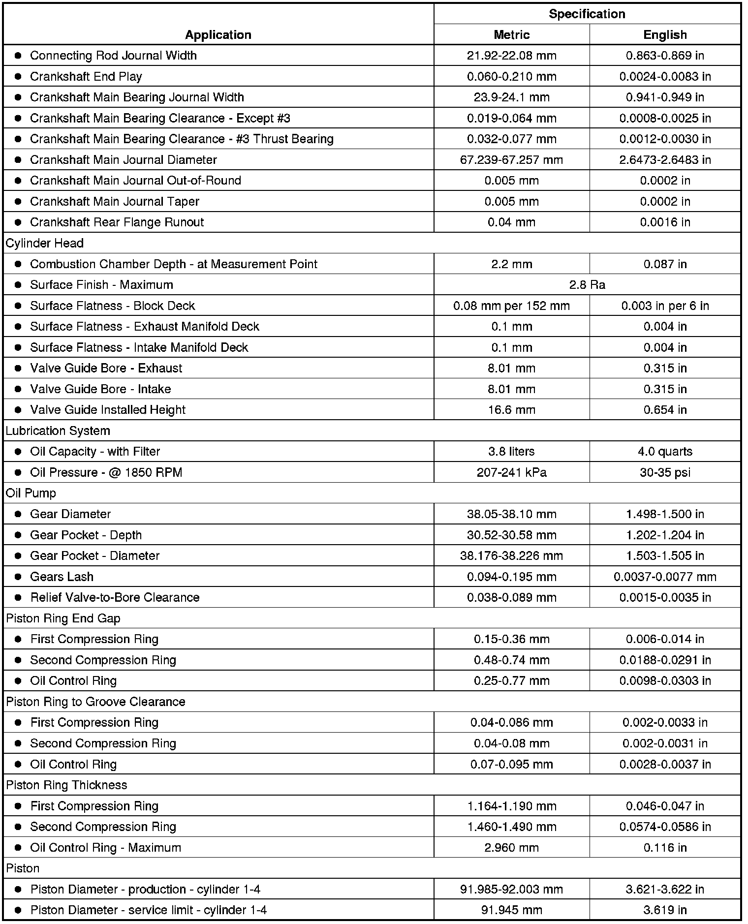 Engine Mechanical Specifications
