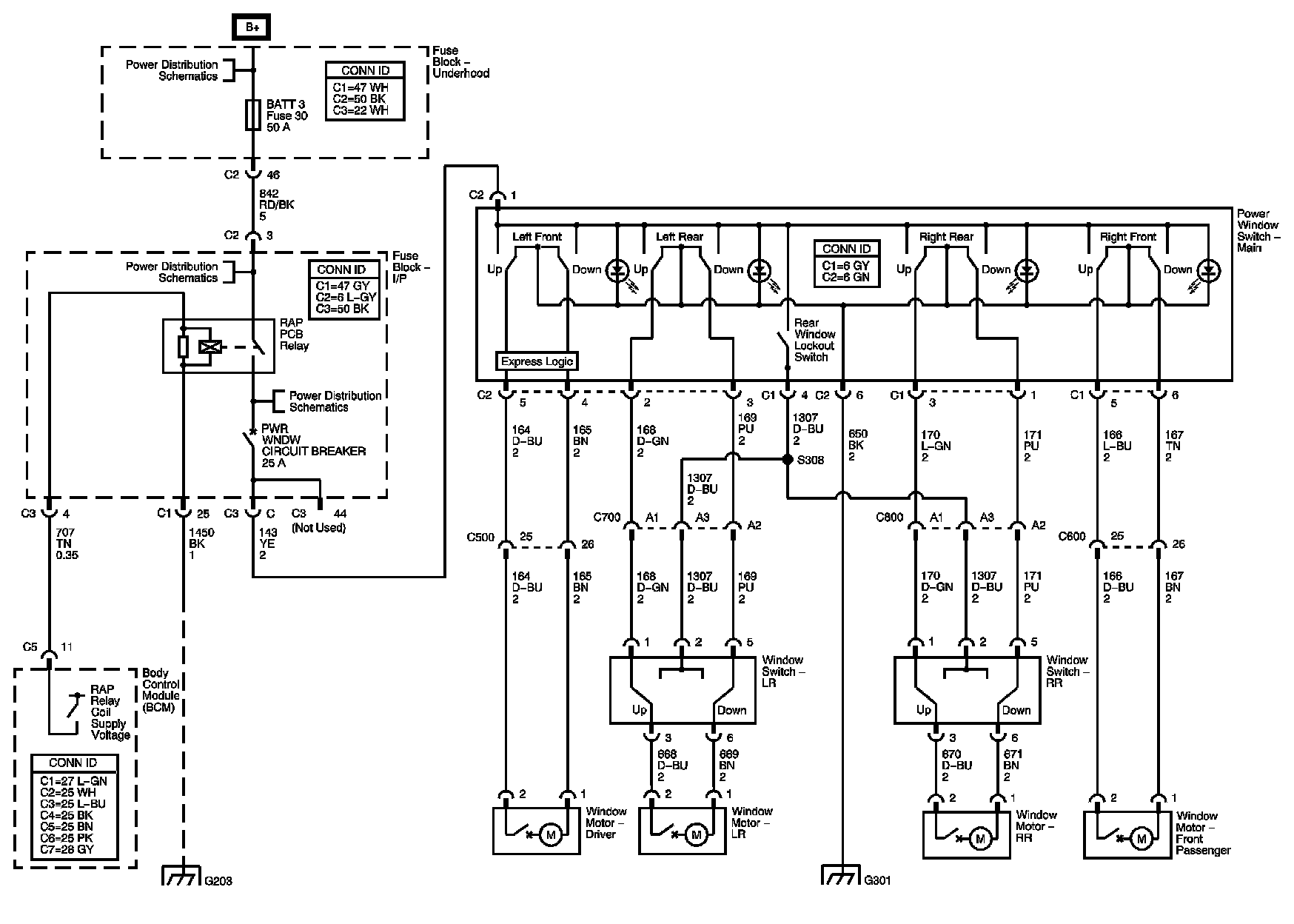 The locations for the Connectors, Grounds, Splices, and Grommets shown within these diagrams can be found via their numbers at Vehicle Locations.