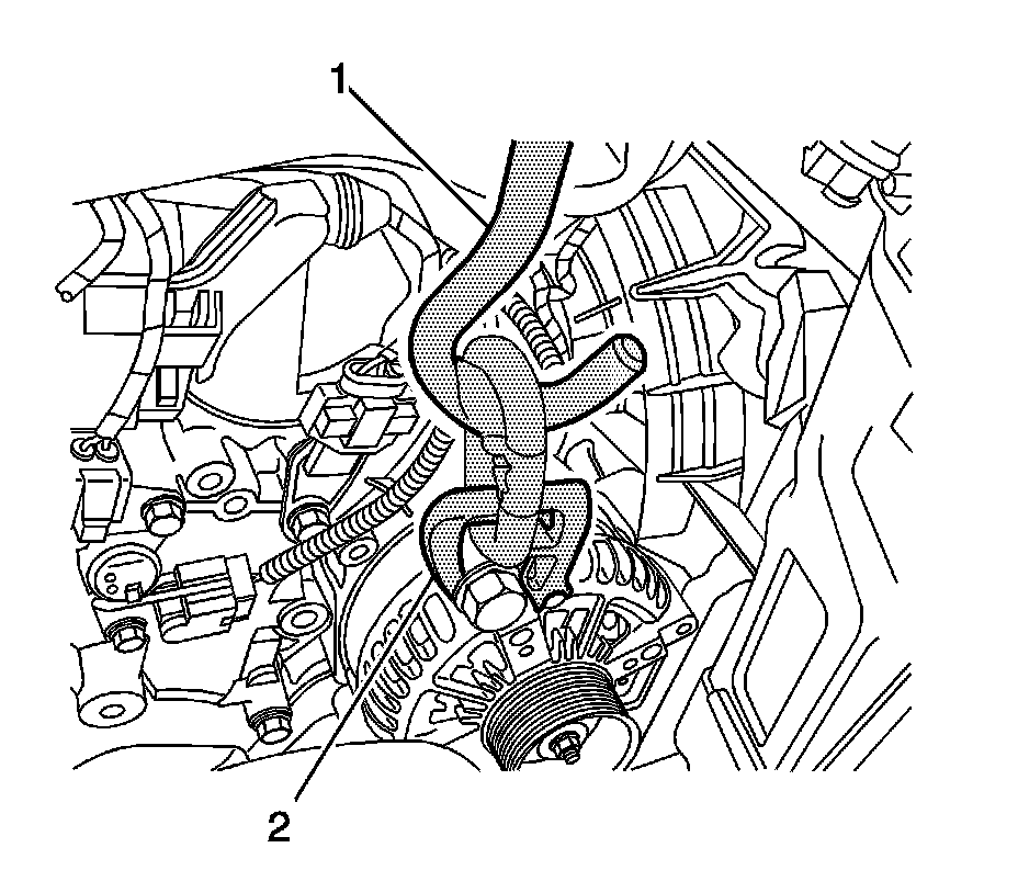 7. Remove the alternator bolt (1), then install the alternator bolt with the engine support bracket J 42451-1 to the engine.