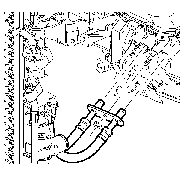 21. Remove the radiator inlet hose. Refer to Radiator Inlet Hose Replacement (LNJ Chevrolet) (Service and Repair)Radiator Inlet Hose Replacement (LNJ Pontiac) (Service and Repair)Radiator Inlet Hose Replacement (LY7).