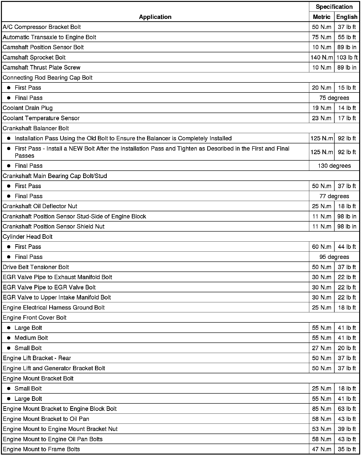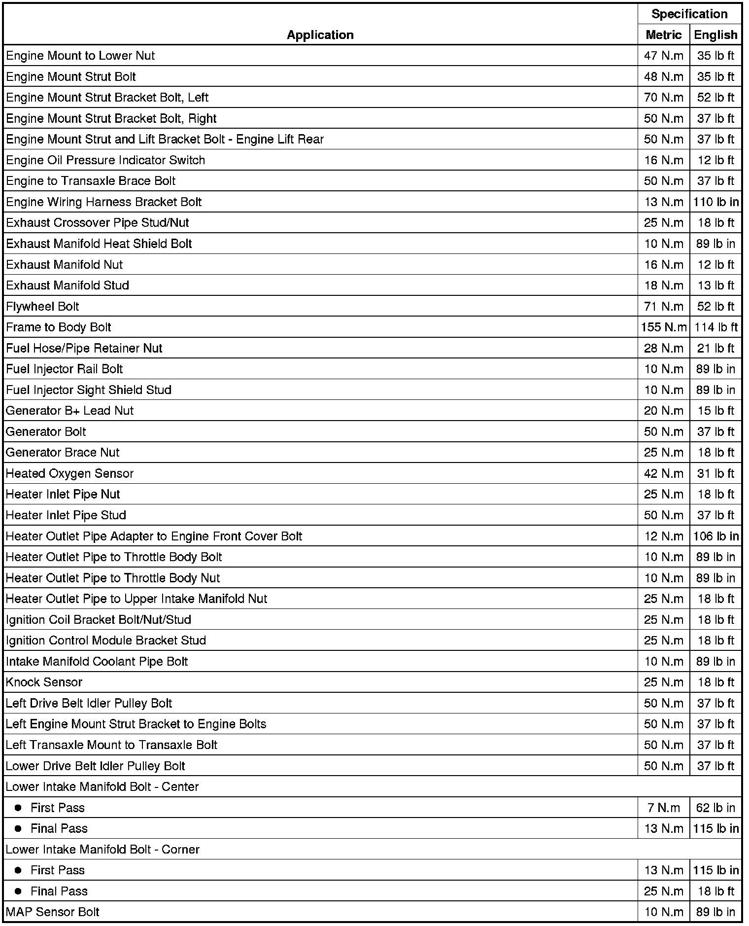 Fastener Tightening Specifications