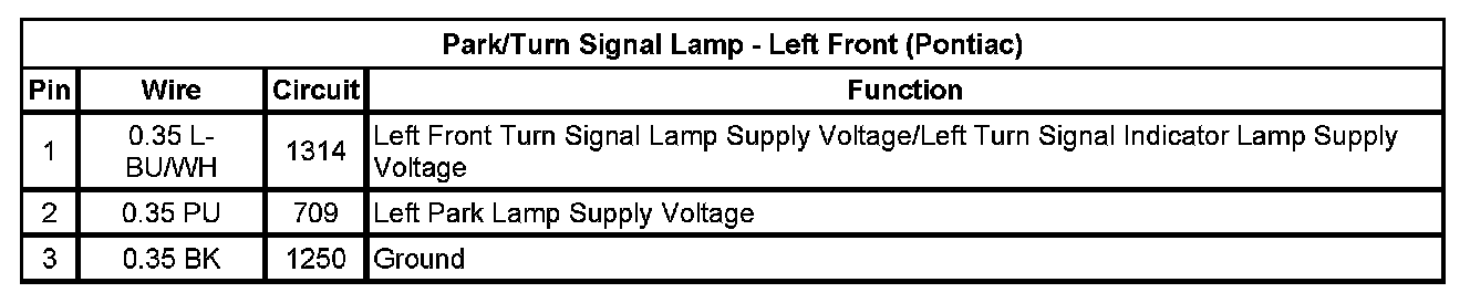 Park/Turn Signal Lamp - Left Front (Pontiac)