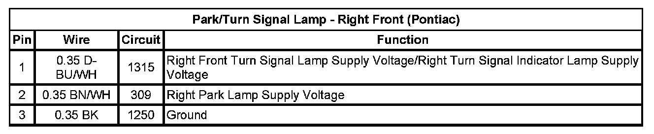 Park/Turn Signal Lamp - Right Front (Pontiac)
