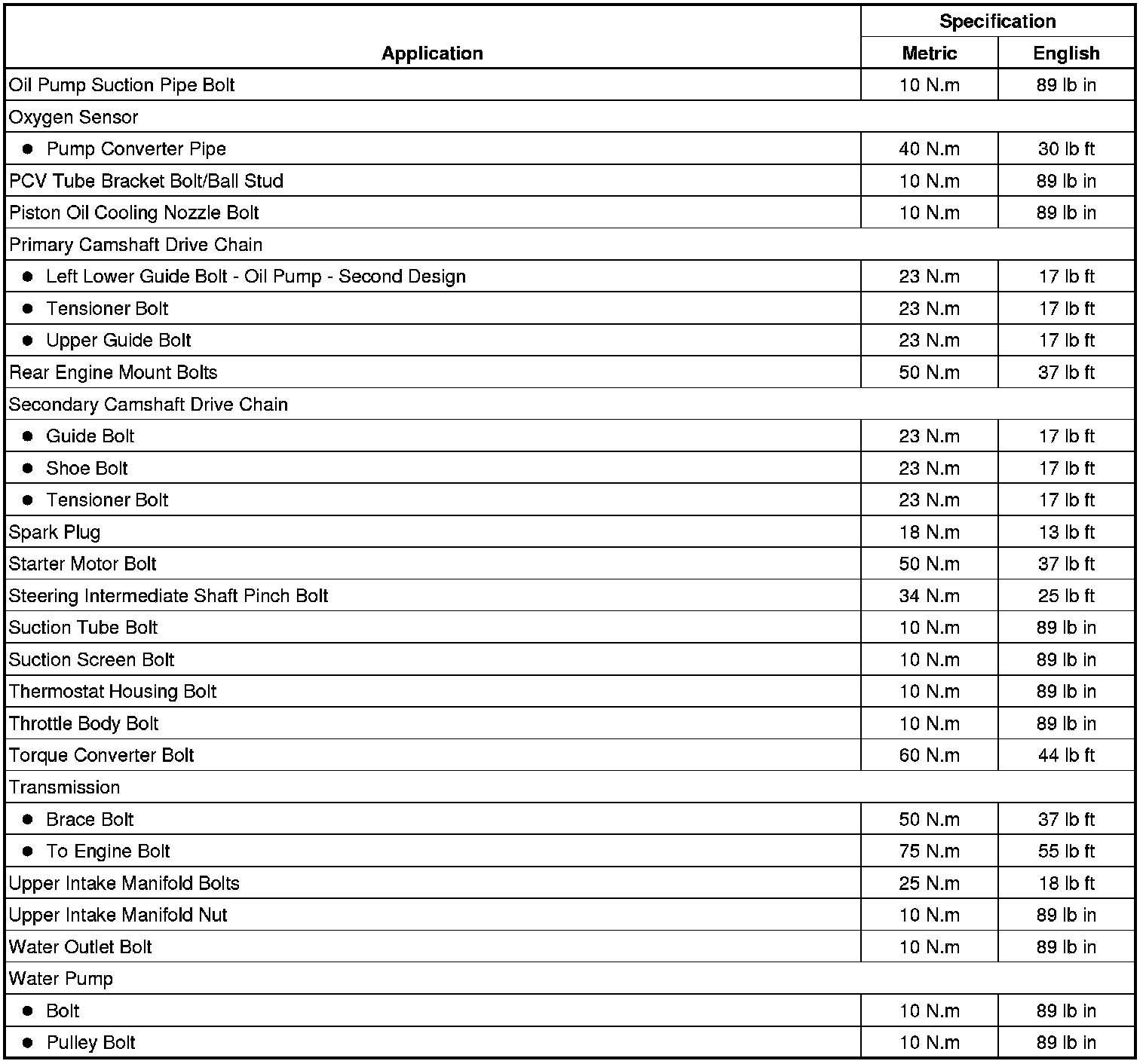 Fastener Tightening Specifications
