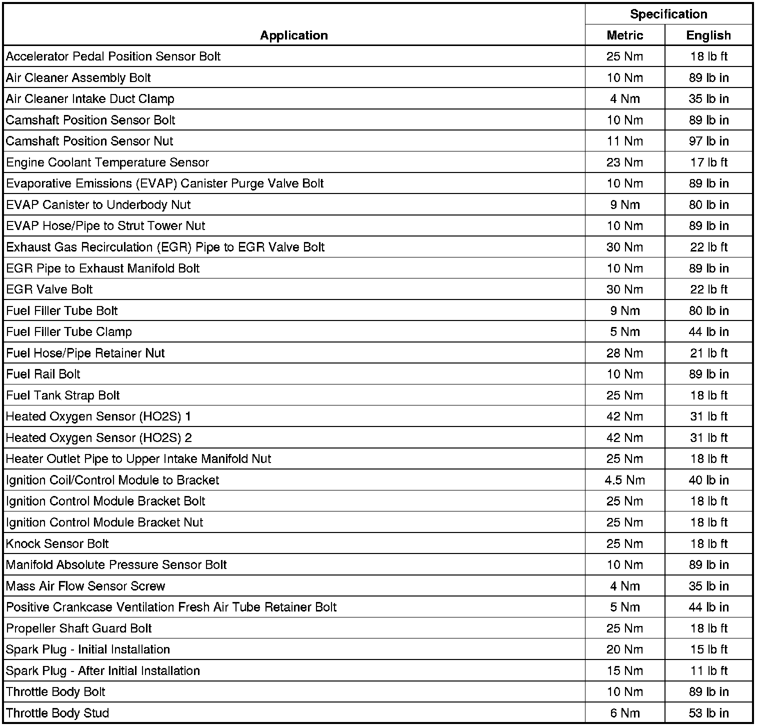 Fastener Tightening Specifications