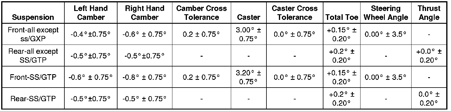 Wheel Alignment Specifications