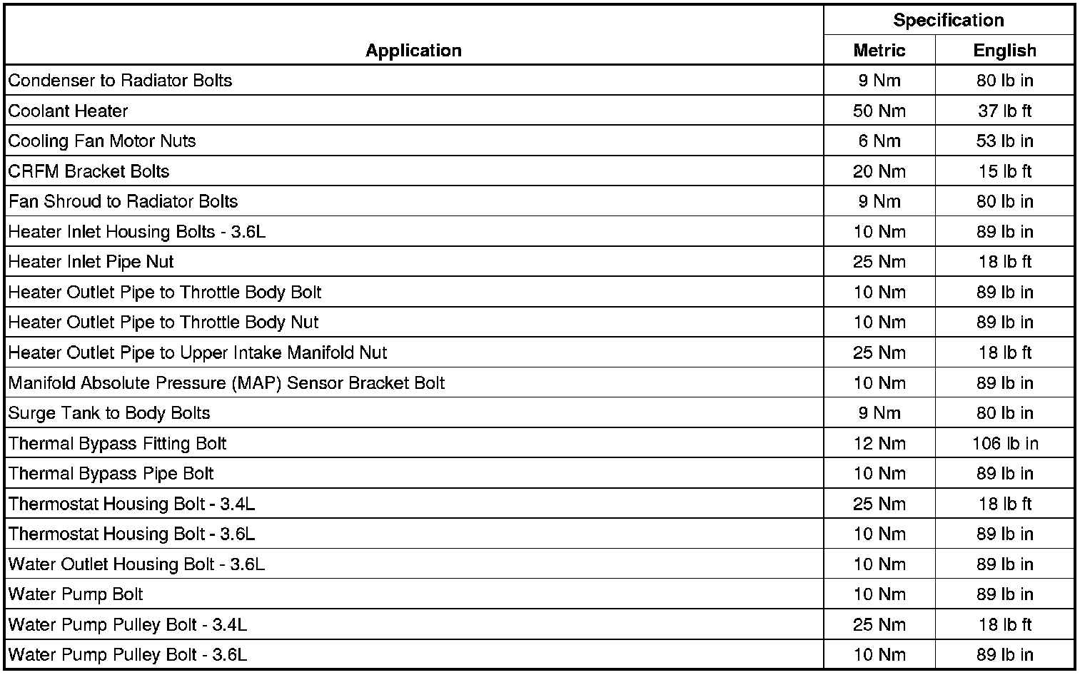 Fastener Tightening Specifications