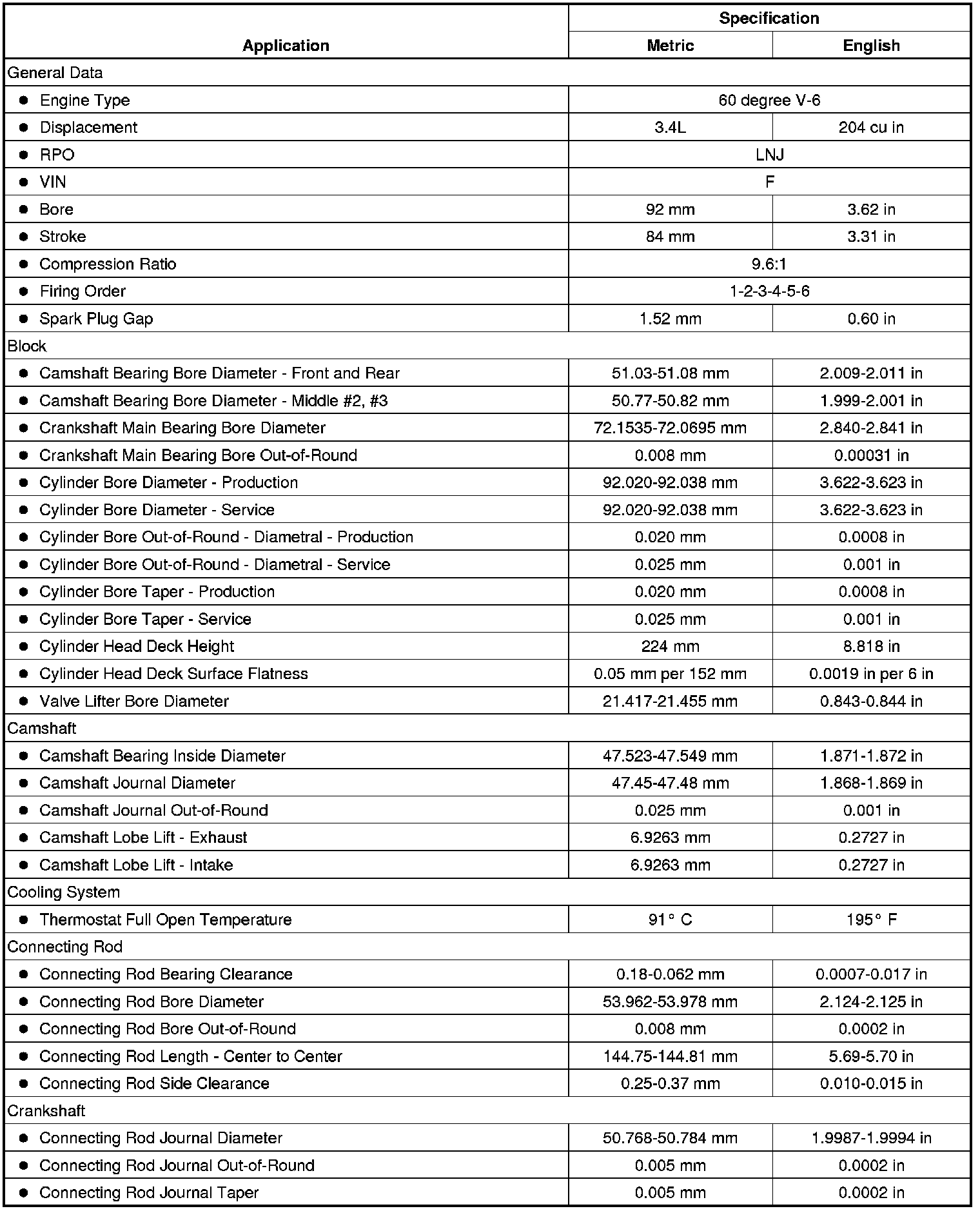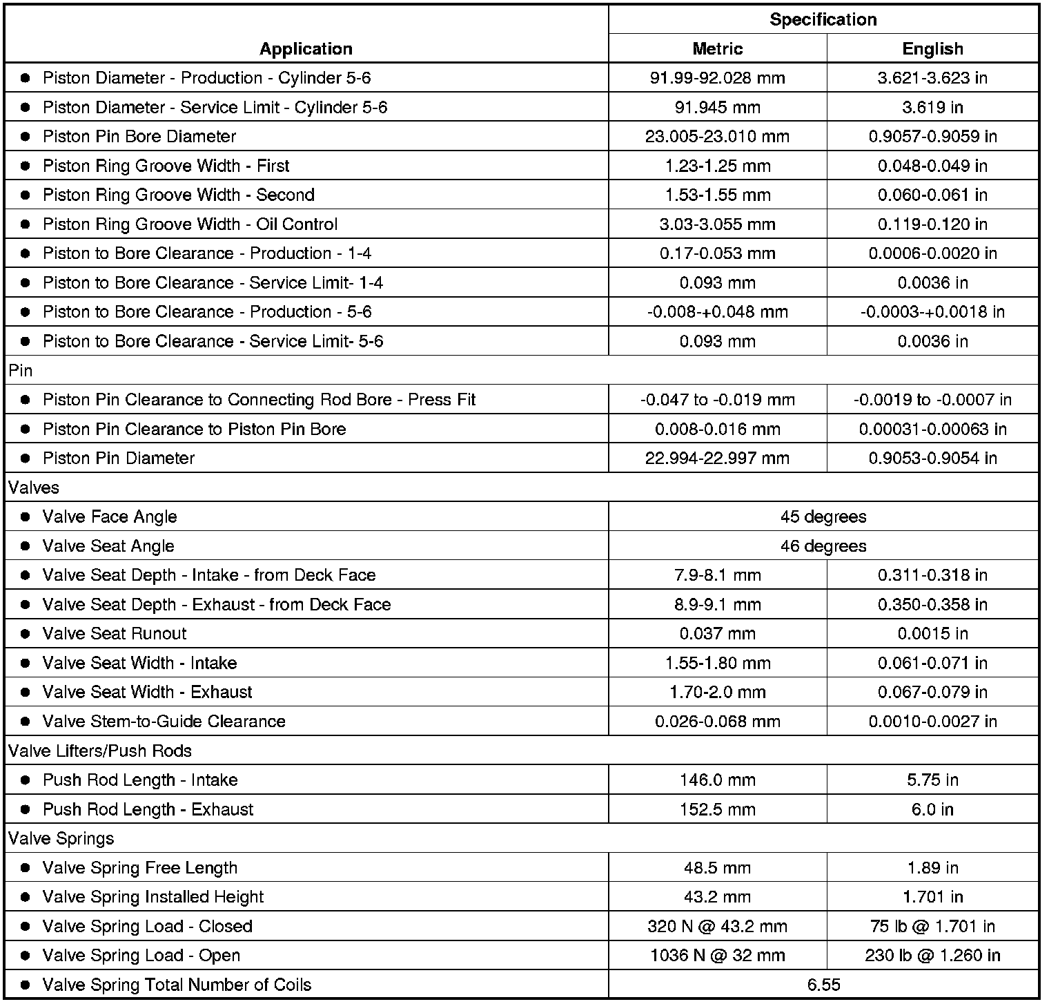 Engine Mechanical Specifications